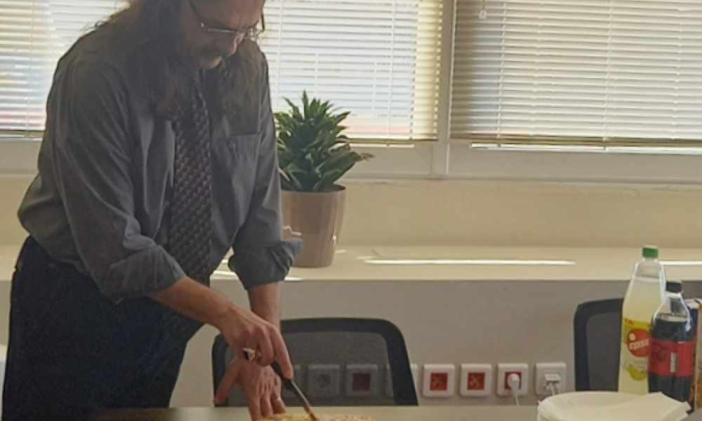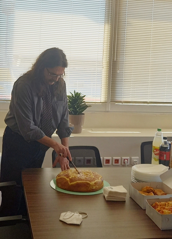 Mr. Kabouris Ioannis, Chairman and CEO of Selene CC is distributing the pieces of the 2022 Galette de Rois. The event took place on February 10th on the company premises, accompanied by the staff and executive members as well as special guests.